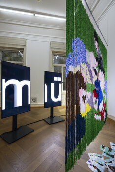 Mizi Lee verbindet persönliche Erfahrungen mit gesellschaftspolitischen Fragen. Ihre großformatigen Perlenvorhänge fungieren als durchlässige Schwellenräume zwischen Öffentlichkeit und Rückzug. Humorvolle wie kritische Motive – etwa Brezeln, das Stuttgarter Pferd oder ein hybrides Selbstporträt – schlagen eine Brücke zwischen Herkunft und neuer Heimat. Auch feministische und migrantische Perspektiven, inspiriert durch ihre Arbeit in der Künstlerinnenband Horizontaler Gentransfer, fließen ein. Lees poetisch-politische Installationen stellen Fragen nach Identität, Sichtbarkeit und kultureller Prägung.